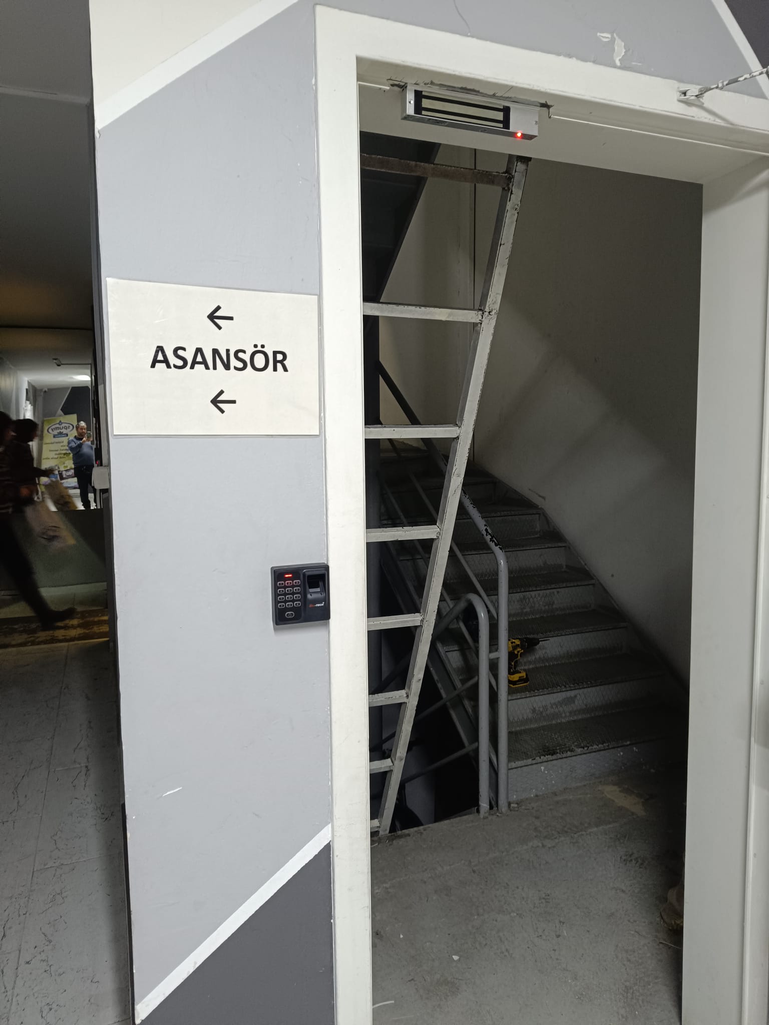 Manyetik Kilit, parmak izi okuyucu ve emergency acil çıkış butonu bu projede kullanılmıştır.